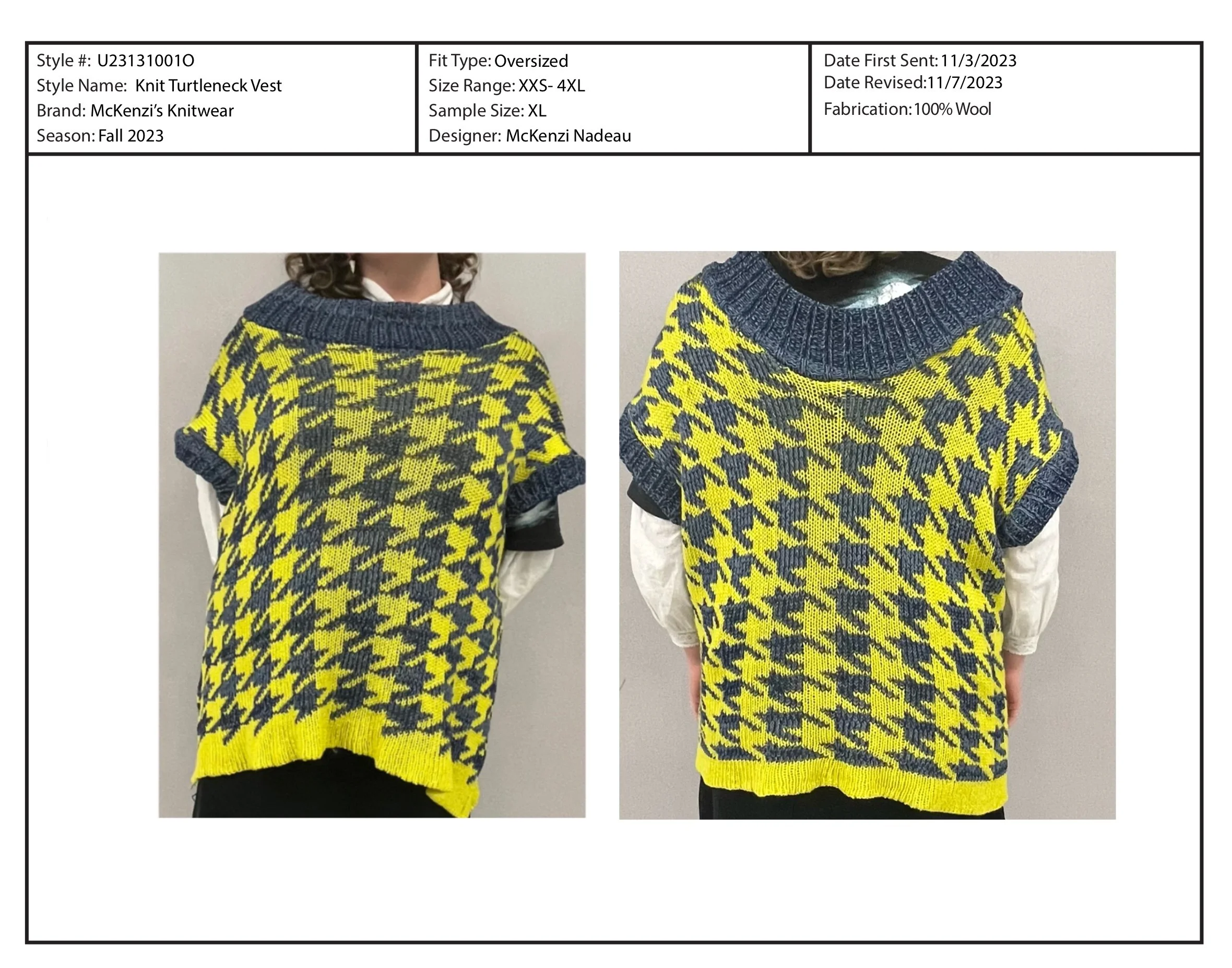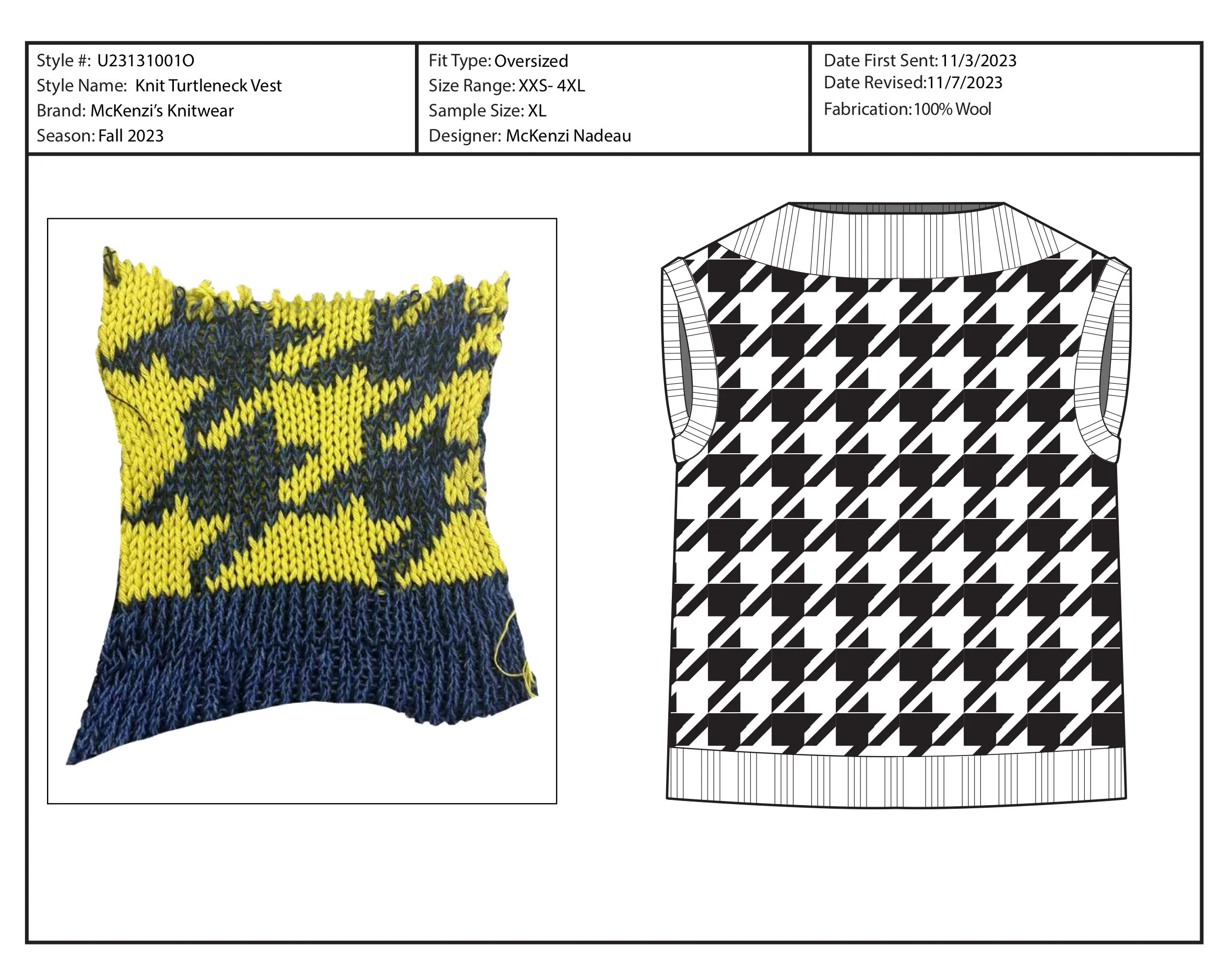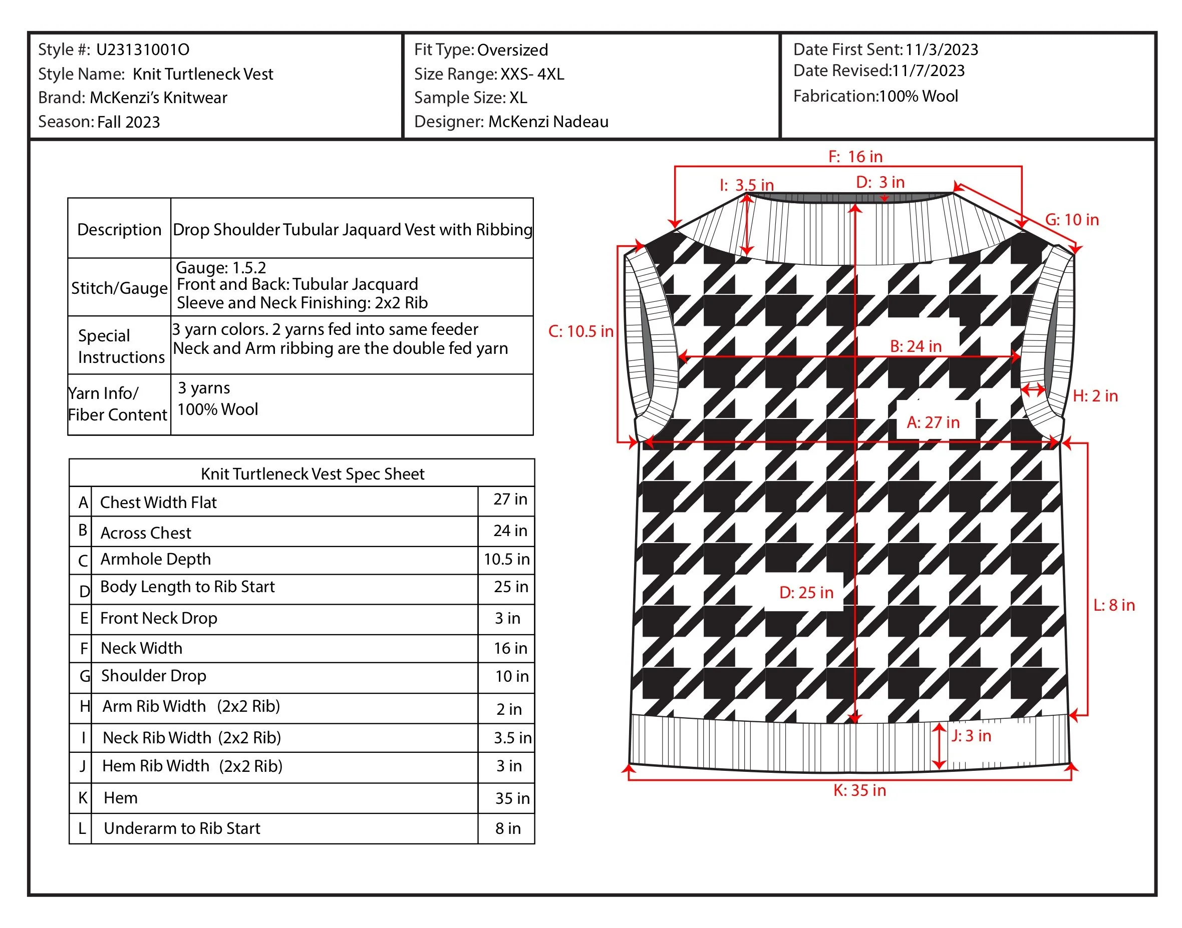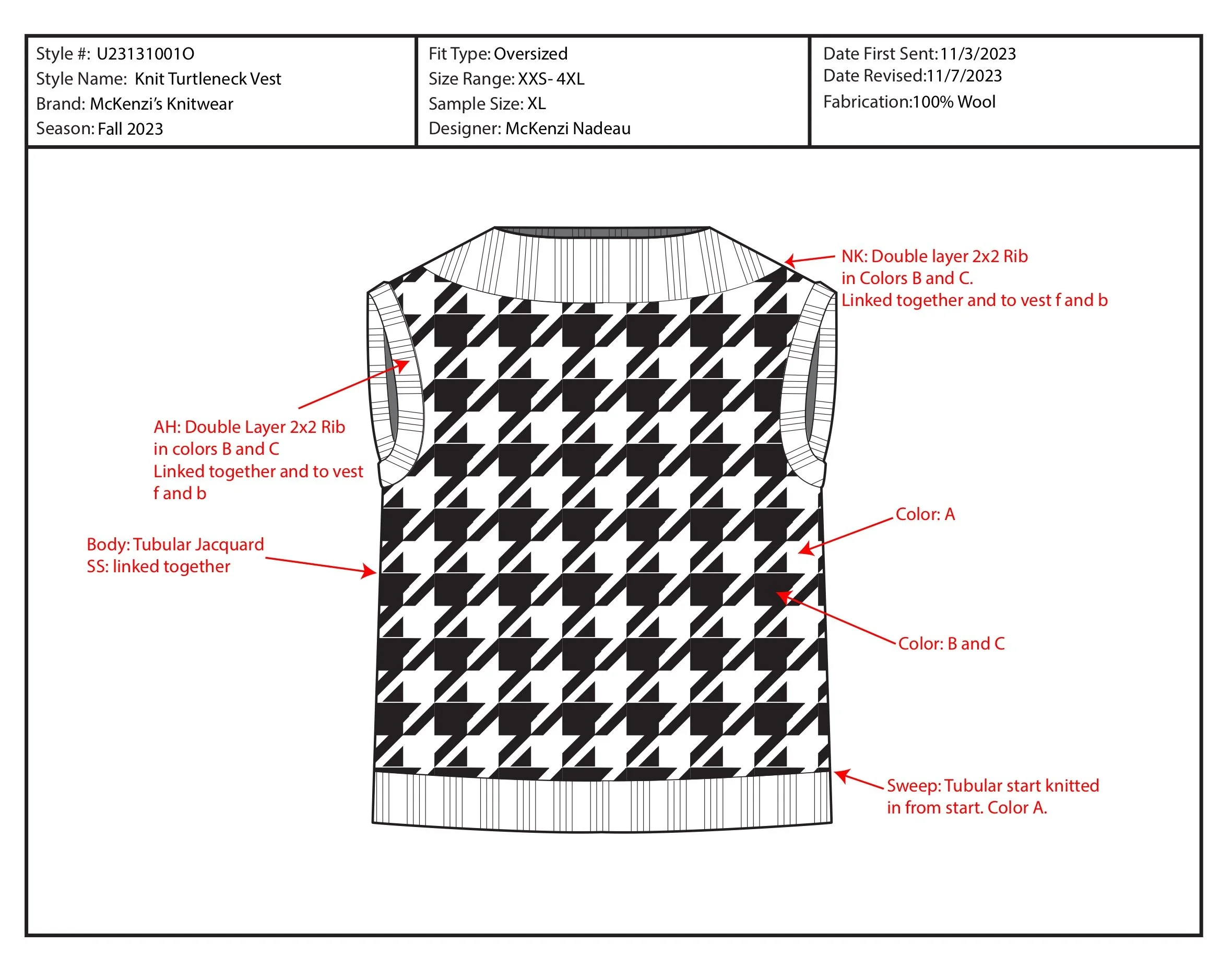 is a tech pack of the knit vest I programmed and made using Create Plus.